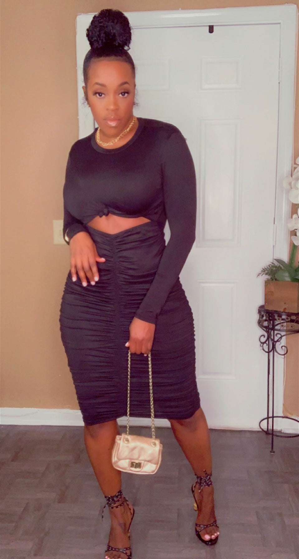 Long Sleeve. Ruched. Bodycon. Sexy Midi Dress.