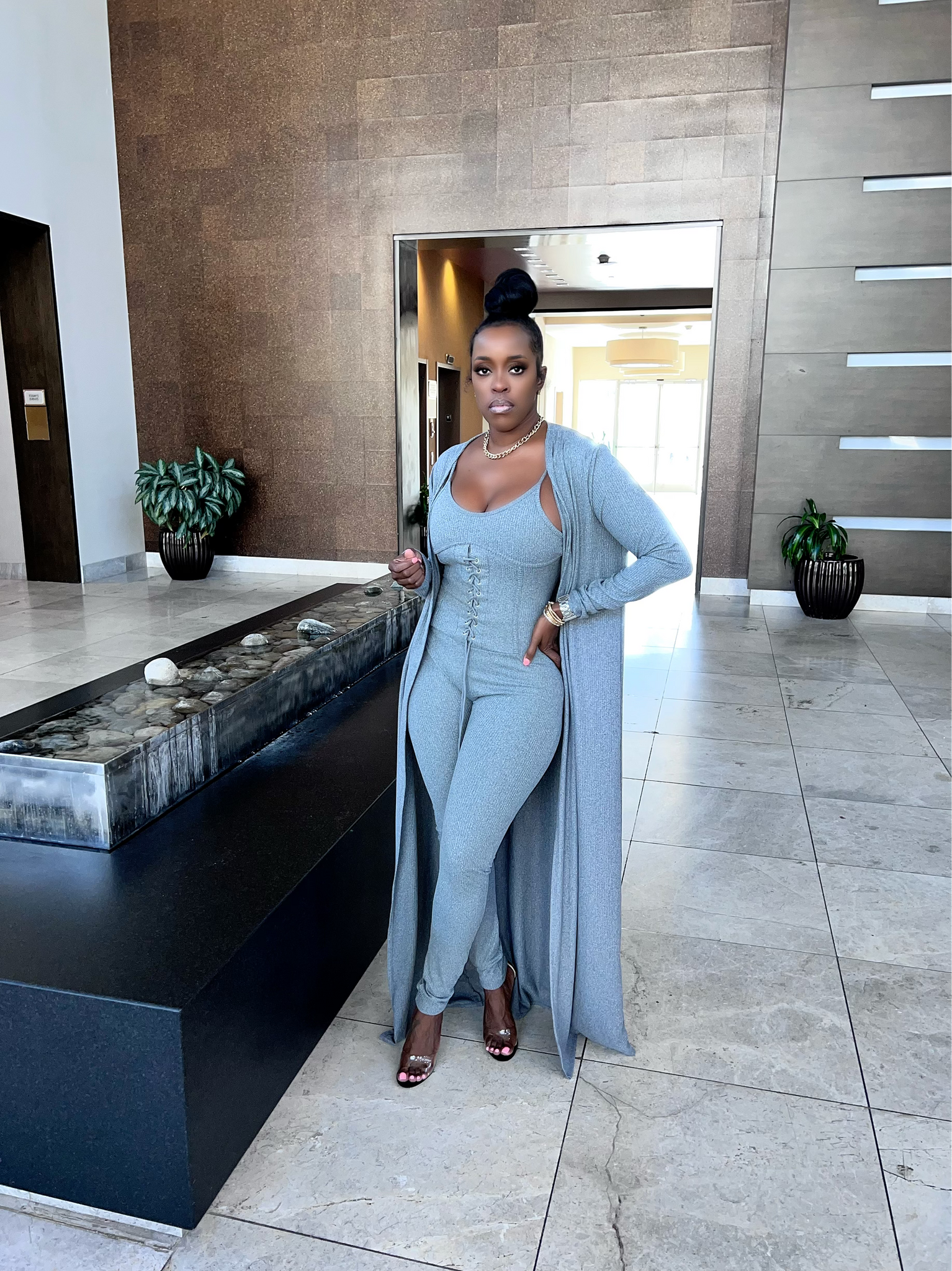 ο»ΏRibbed. Jumpsuit w/Duster. Corset Detailed.Β