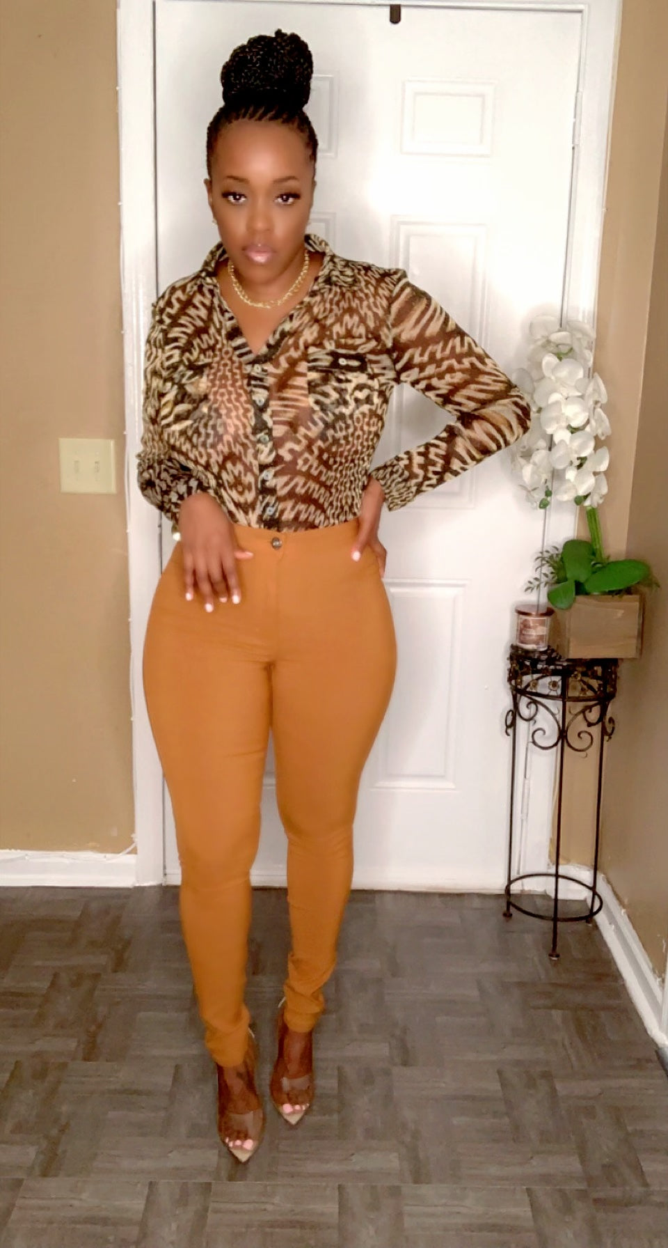 Mesh Animal Print Top. Long Sleeve. Buttoned Down.